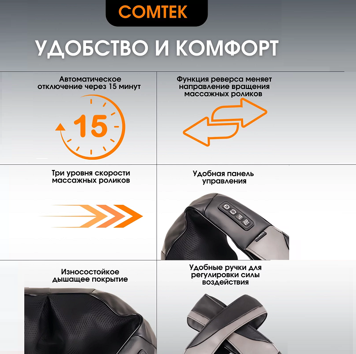 - выполняет роликовый растирающий массаж, массаж шиатцу и постукивающий массаж при помощи 10-ти массажных роликов;