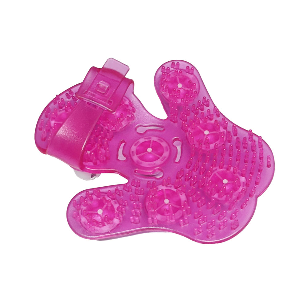 Вставьте указательный, средний и безымянный пальцы в петлю на обратной стороне массажера и зафиксируйте ремешок. Приложите к проблемному участку тела и массажируйте круговыми движениями, контролируя интенсивность и силу нажатия.