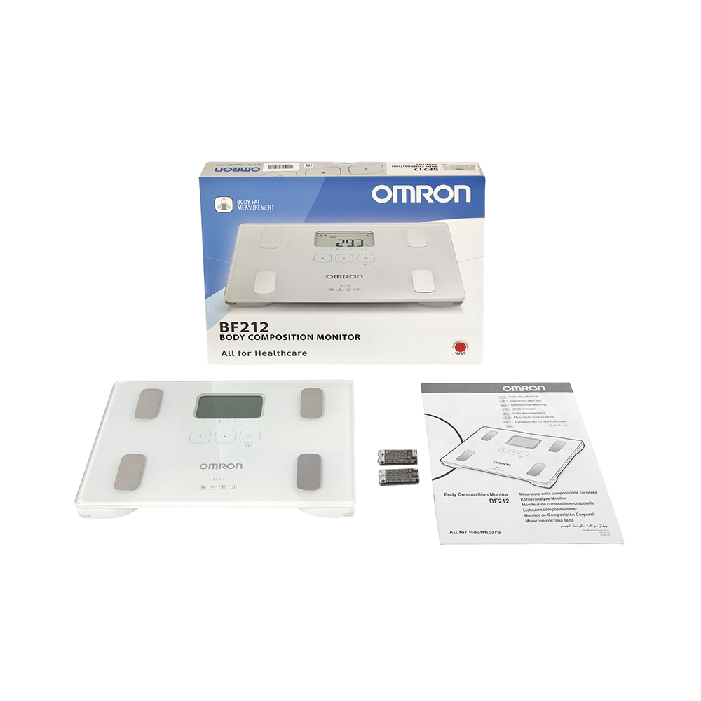 Монитор состава тела Omron BF-212, модель HBF-212-EW, - это медицинский прибор, предназначенный для измерения и отображения следующих параметров тела: массы, содержания жира в организме (в процентах), индекса массы тела (ИМТ). Применение в работе 4 независимых датчиков позволяет получить максимально достоверные результаты.
