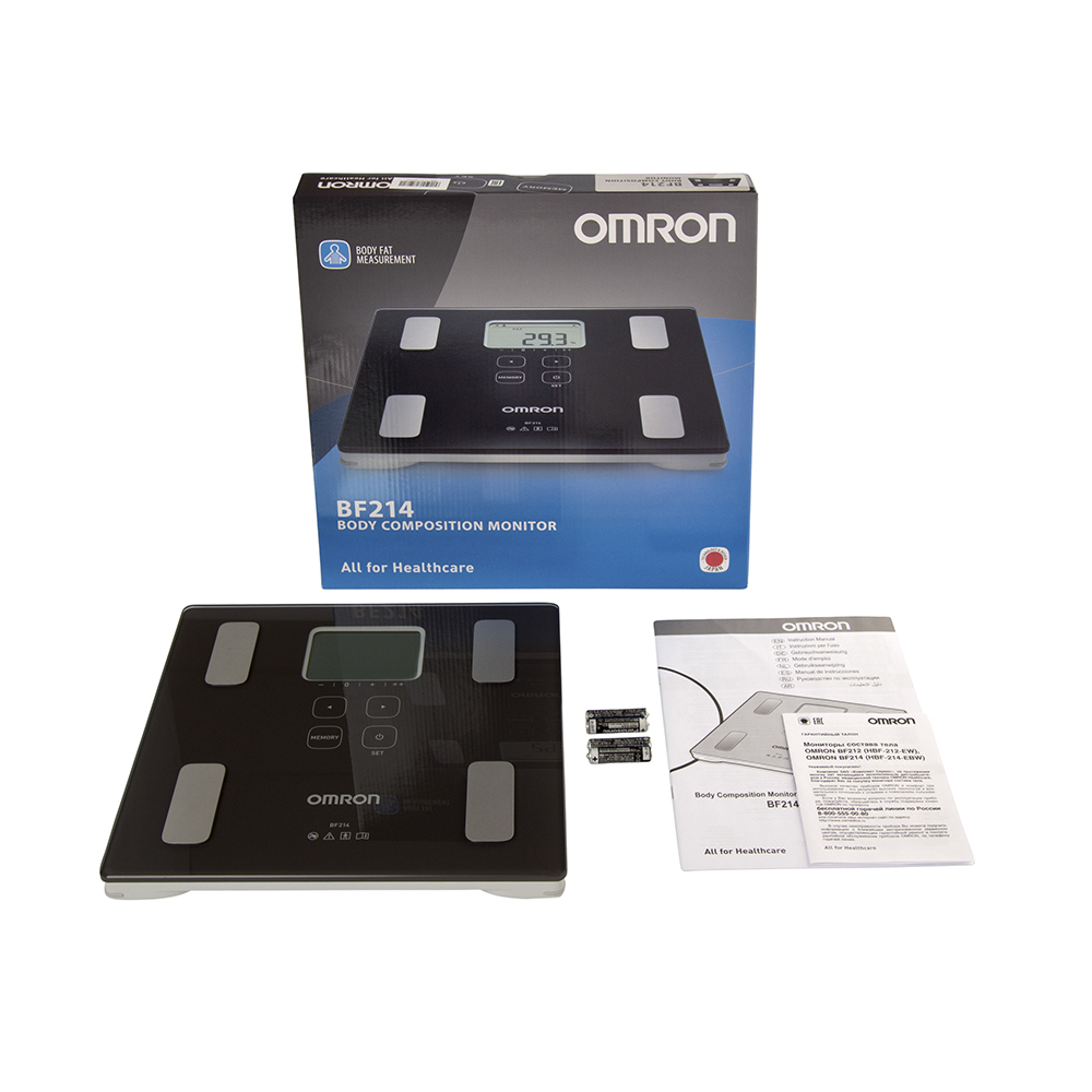 Отличие модели монитора состава тела Omron BF-214 от младшей модели Omron BF-212 состоит в наличии функции определения процентного отношения скелетной мускулатуры. Увеличение процентного отношения скелетной мускулатуры означает, что организм может легче растрачивать энергию, а значит, менее склонен к накоплению жира. Это облегчает ведение активного образа жизни. Проводить измерения монитором состава тела Omron BF-214 могут до четырех пользователей, для каждого из которых предусмотрена отдельная учетная запись с сохранением всех результатов измерения. "Гостевой режим" без сохранения результатов также доступен.