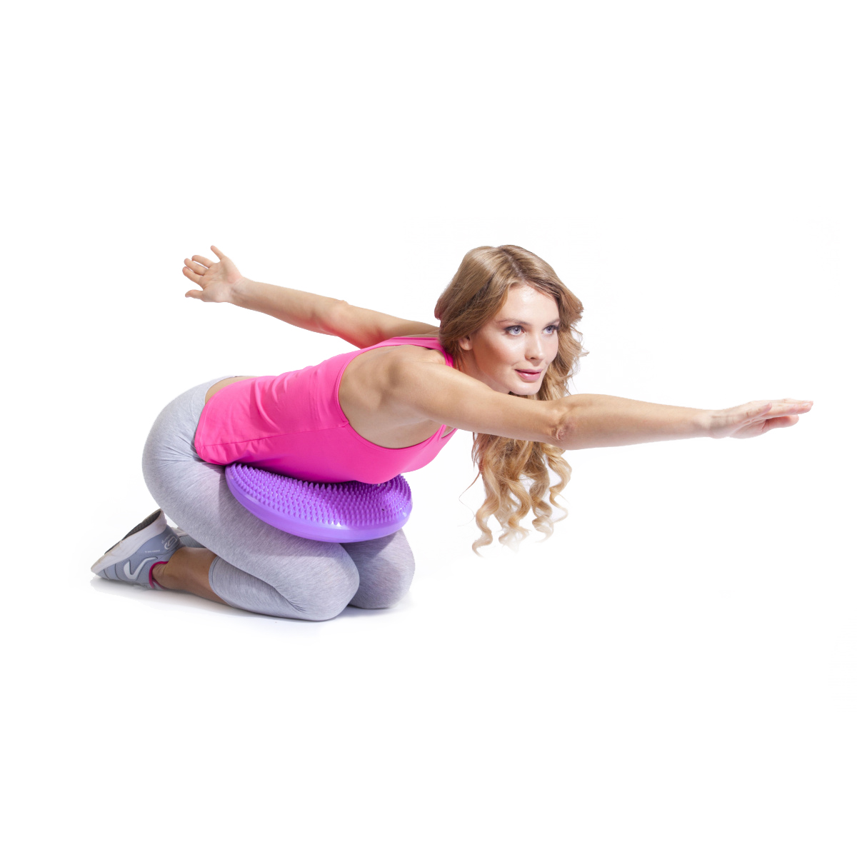 Упражнения c балансировочным диском приведут в тонус мышцы рук и ног, укрепят связки. Балансировочный диск развивает гибкость и координацию, улучшает осанку и работу вестибулярного аппарата. Принцип воздействия диска "Равновесие" заключается в том, что при выполнении, к примеру, обычного приседания на не полностью стабильной поверхности, в движение вовлекаются мелкие мышцы-стабилизаторы. Занятия на балансировочном диске, совершенствуя фигуру, сделают Вас выносливее и сильнее.